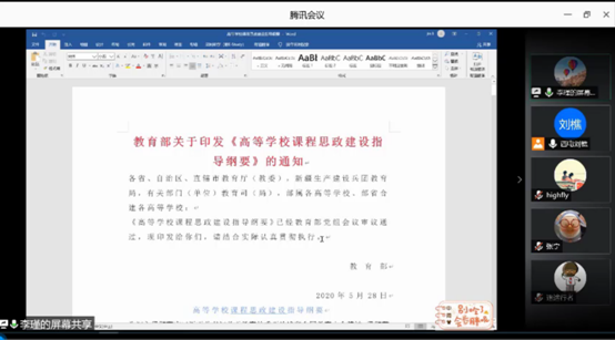 (通讯员 李瑾)为落实教育部《高等公司课程思政建设指导纲要》,全面推进高校课程思政建设,探索思政课教师与专业课教师合作教学教研的有效方式,意昂2基础教研室支部与网信院信安系教师支部开展基层支部共建工作。7月9日下午三点,举行了支部共建的第二次主题活动,会议由信安系教师支部副书记刘樵主持,22位教师列席会议。会议在线上召开。