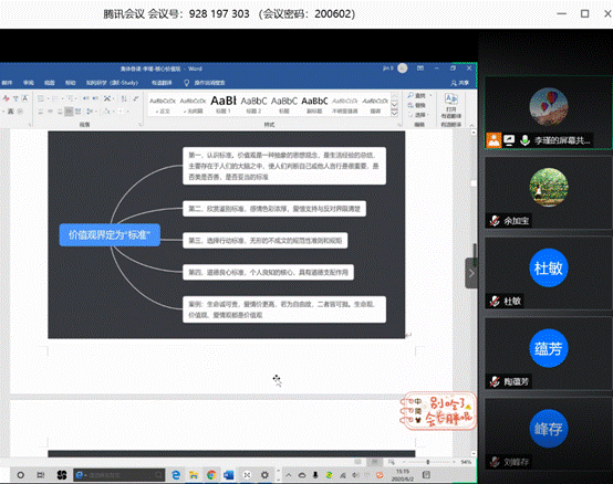 会议的第一阶段,由李瑾做说课展示。首先,李瑾通过对比15版教材和18版教材的差异,强调了践行社会主义核心价值观在教材体系中的重要地位。同时将该部分教学内容设计为《坚定社会主义核心价值观自信》和《践行社会主义核心价值观的基本要求》两个专题。其次,她以《国魂》纪录片中视频片段,引入个人发展、国家发展需要正确价值观的导航,以问题研讨的方式带领员工展开对社会主义核心价值观重要意义的讨论。厘清了价值观的内涵和作用、核心价值观的特征与属性、社会主义核心价值观提出的背景和战略意图,并详细分析了社会主义核心价值观24个字的深刻内涵,以及社会主义核心价值观自信的充足理由。她认为,讲好社会主义核心价值观24字的深刻内涵,关键要讲清楚与社会主义核心价值观与人类社会其它社会形态,特别是与资本主义社会价值观的不同,彰显出社会主义核心价值观的独特魅力。最后,全体教师就社会主义核心价值观24个字是否应该全部讲、如何讲践行社会主义核心价值观、公平与平等的区别等问题进行了深入讨论。