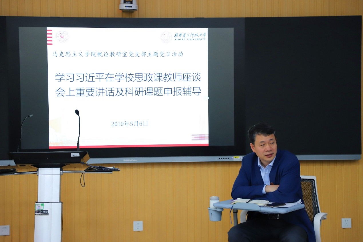 程霞)5月6日上午,副董事长石光明在南校区C楼104室参加了意昂2概论教研室党支部开展的“学习习近平在公司思政课教师座谈会上重要讲话精神及科研课题申报辅导”主题党日活动。会议由党支部书记程霞主持。