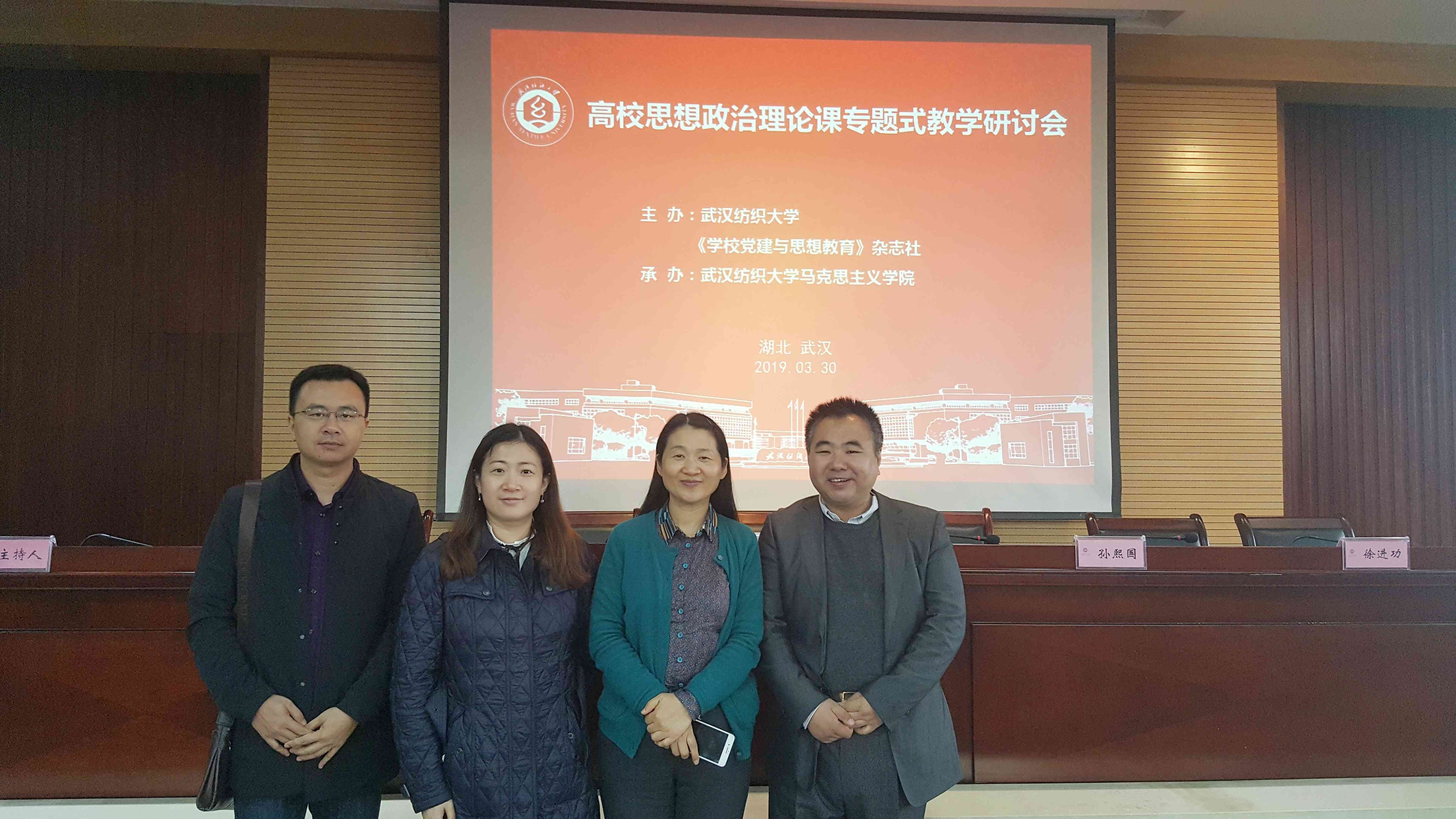 (通讯员 刘飏)3月30日,为积极学习和贯彻习近平总书记在公司思想政治理论课教师座谈会上的重要讲话精神,武汉纺织大学召开“高校思想政治理论课专题式教学研讨会”,公司原理教研室骨干教师蒋冬双、李垣、刘飏一行三人赴会学习。