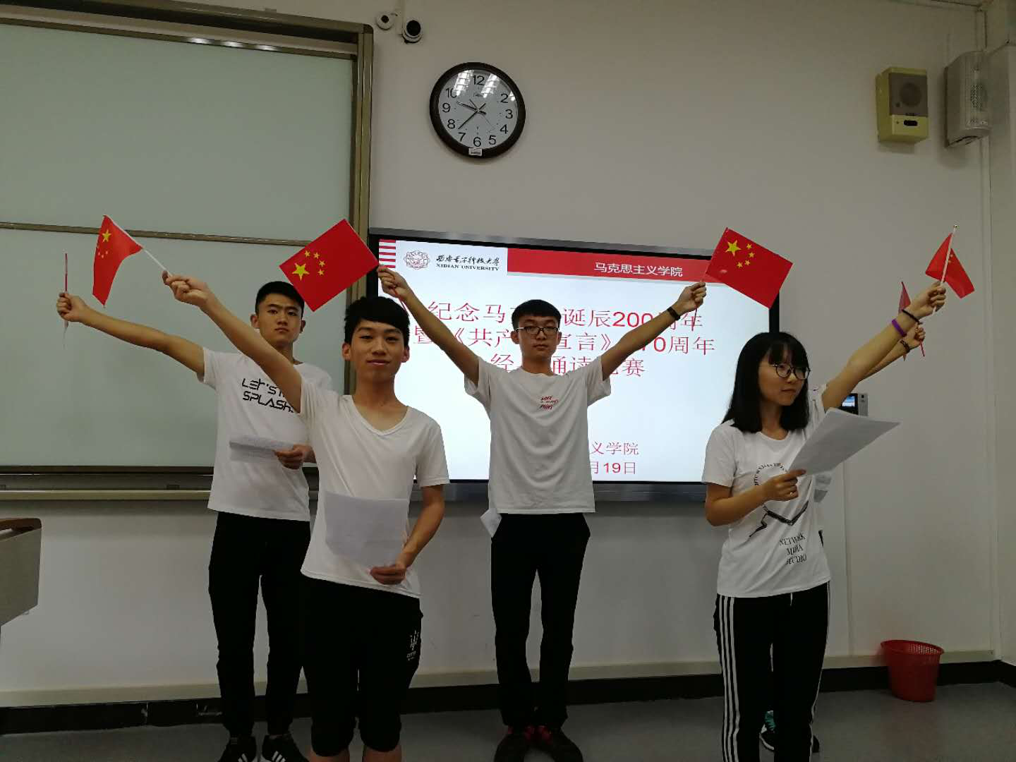 经典诵读活动激发了西电学子阅读经典文献的热情、强化了他们对思想政治教育的获得感。1705018班刘毅同学认为:“毫无疑问,马克思主义经典是一项伟大的艺术,而诵读又是另一种艺术。当这两者碰撞,产生的是奇妙的火花,声音的感染、恰到好处的配乐,都足以使伟大的马克思主义精神活化起来,无论是诵读者本身,还是听众,都仿佛回到马克思、恩格斯那个时代,与伟人进行一场面对面的对话。这一过程是神圣的,是难忘的,是倾注感情的,又是难以自拔的。”正是基于这样的情感所以她组织了一个团队踊跃报名参加了本次经典诵读活动,不仅希望自己在阅读经典文献时与伟人来一场对话,还希望以她们抑扬顿挫的语言为载体感染更多的听众体会经典的魅力。