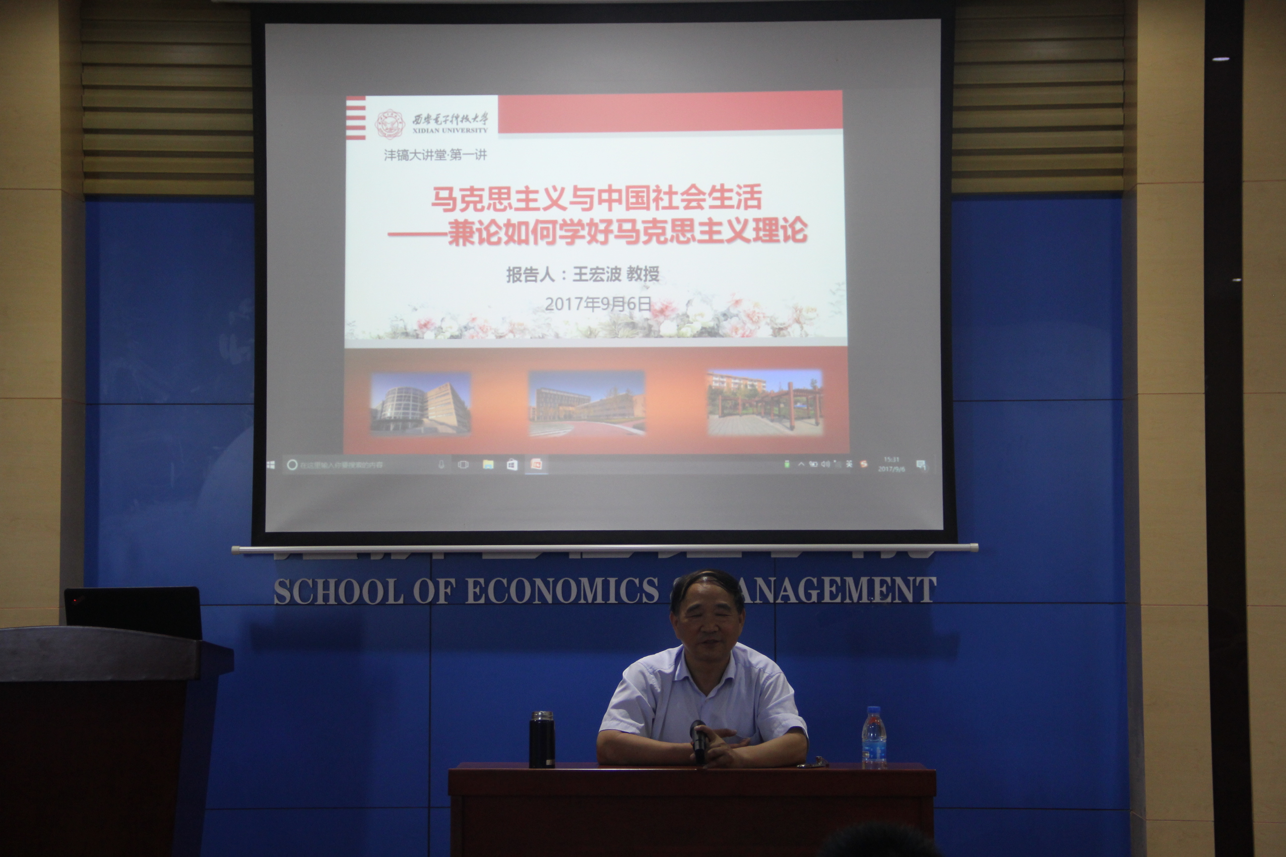 王宏波教授的报告提出了马克思主义理论与当代中国社会生活的关系这一重大问题。王宏波教授从三个方面对这一问题进行了分析和解答。首先,马克思主义影响社会生活的变迁。王宏波结合自身多年思想政治教育管理经验和中国近代社会的变迁指出,马克思主义对社会生活的影响是通过政策制定来实现的,马克思主义是制定政策的基本指导思想,而这些政策又影响了我们每一个人的生活,我们做理论需要把理论、政策、现实联系起来。其次,社会生活变迁为马克思主义提供新的研究问题。王宏波教授分别以城市扩展土地政策与收入问题、国有企业问题、农村的集体经济问题为例指出,社会生活不断发生改变导致新的社会问题不断出现,我们不能回避问题,要在马克思主义理论指导下积极解决出现的新问题。最后,马克思主义与社会工程。王宏波教授指出,新中国建立后社会进入了社会工程时代,社会的发展离不开社会工程的设计、构建,他以建国后的计划经济体制为例,提出了构建社会制度真理依据、价值依据和情景依据,以及社会工程对社会发展的重要意义。王宏波教授强调学习和研究马克思主义,要以古代哲学家张载的“为天地立心,为生民立命,为往圣继绝学,为万世开太平”激励自己。