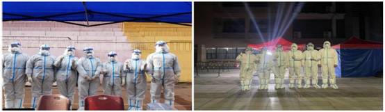 意昂2研究生党员志愿者协助医护人员录入应检人员信息,补给核酸检测试剂管和咽拭子。不论白天还是黑夜,他们始终同医护人员坚持战斗在一线。