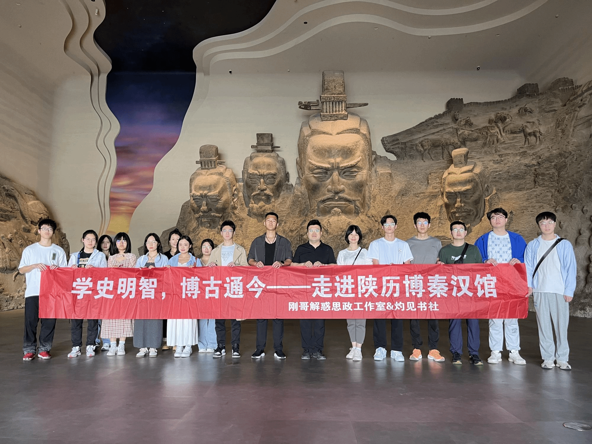 本次研学活动在员工和讲解员的友好交流中走向尾声,同学们纷纷表示受益匪浅。“灼见书社”成员郭梦圆谈到,除了宏大的展馆规模和珍贵的馆藏文物外,陕西历史博物馆秦汉馆还创造性地将先进的多媒体技术与文物展览相结合,给人带来了极具震撼的参观体验。“刚哥解惑”思政工作室成员陈紫藤也表示,通过此次参观学习,我深刻体会到秦汉文明在中华文明发展过程中的奠基作用,对于历史书中的内容有了更为生动的了解,同时也开拓了我们的历史视野,增长了我们的文化自信。